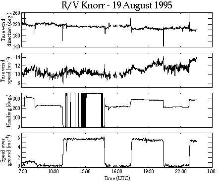 the R/V Knorr, which records platform-relative winds in one minute intervals. These